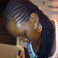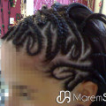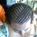 Trenzas pegadas al cuero cabelludo sin extensiones, solo del propio pelo de la persona. Éstas son las típicas trenzas con dibujos que ves en las revistas. Aguantan hasta un mes y medio y se tarda unas dos horas en hacerlas.