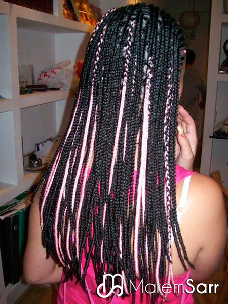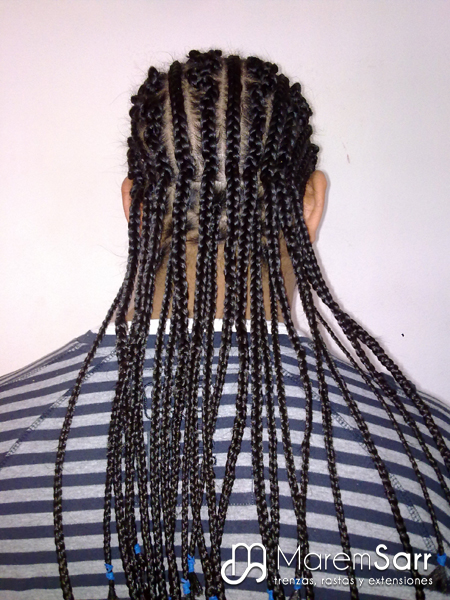 Son trenzas que van pegadas al cuero cabelludo con extensiones para dar más volumen y más cuerpo al cabello. Como en las sueltas, también se pueden poner los colores que se quiera y diferentes dibujos. Se tarda unas 3 horas de trabajo y aguantan hasta 2 meses.