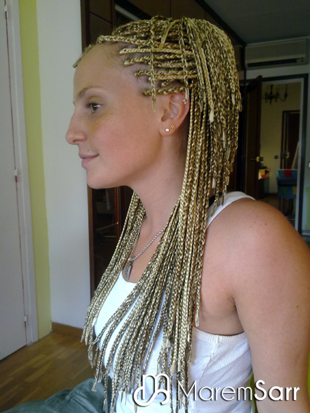 Son unas trenzas sueltas solo del propio cabello de la persona, también se pueden hacer todas sueltas o las parte de atrás suelto la de delante pegadas como una diadema. Se tarda unas 2 o 3 horas de trabajo en hacerlas y aguantan entre mes y medio 2 meses.